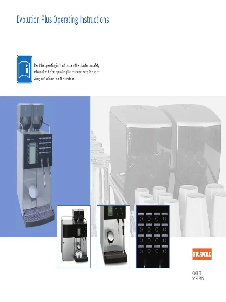Franke evolution plus operating instructions manual troubleshooting and. During automatic and manual cleaning, hot water and steam are. Options described in this manual can also be set using the service tool. I'm here for espresso parts, manuals & equipment take me there. The evolution is a coffee machine for use in food service, offices and.